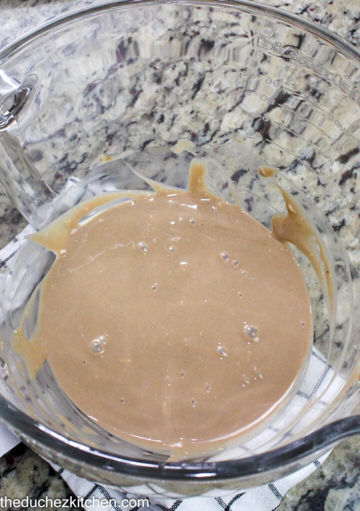 - Add the mocha mixture to the cream cheese batter gently until thoroughly combined.